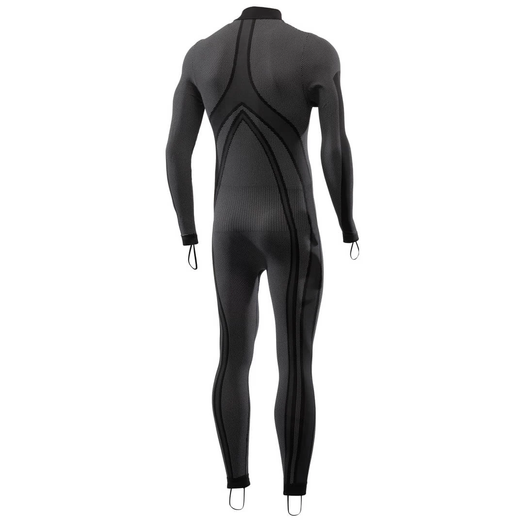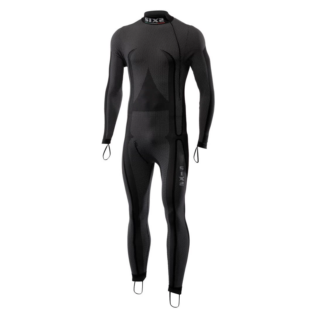 Het SIXS Carbon Underwear® ondergoed met opstaande kraag incl. hand- en voetlussen is een absolute must voor elke motorrijder die een leren pak draagt. De zijrits tot aan de heup helpt bij het in- en uitstappen. Het vergemakkelijkt niet alleen het dragen van een bovenkleding (bijv. een lederen pak uit één stuk), maar dankzij het materiaal van SIXS Carbon Underwear® biedt het een natuurlijke warmteregulering en beschermt het de huid tegen zweten, zelfs op warme dagen. Dit voorkomt ongewenste vorst- of koudeaanvallen omdat vocht van het lichaam wordt weggehouden. Dit product kan ook worden gedragen voor andere sporten waarbij een overkleding uit één stuk wordt gebruikt (bijv. duikpak of skipak).