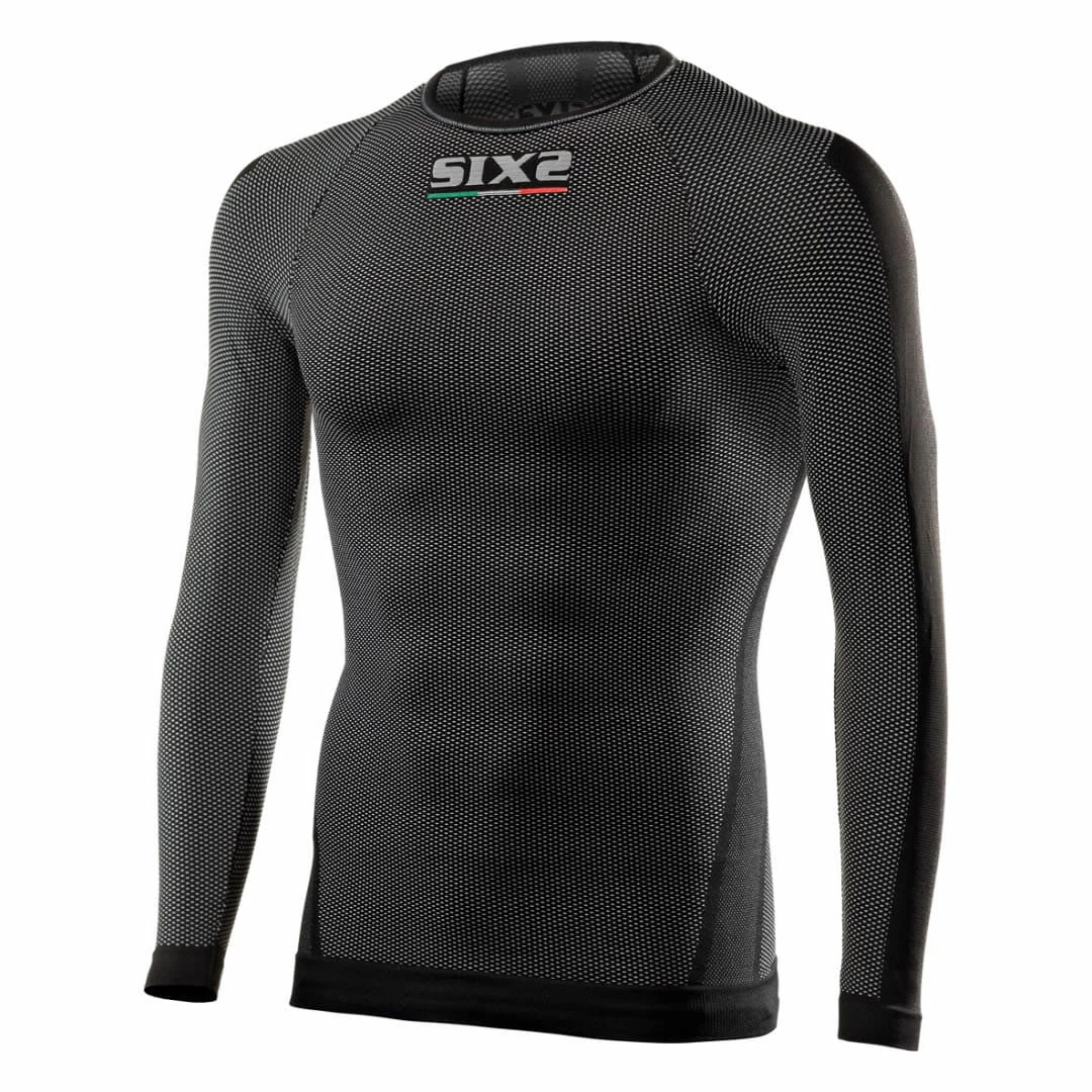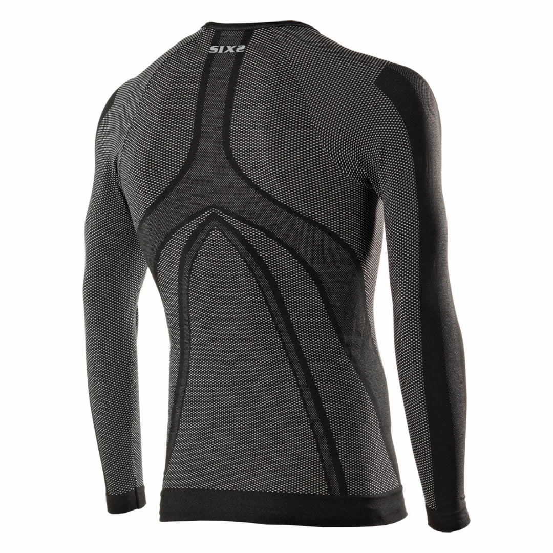 Het SIXS shirt met lange mouwen en ronde hals van Carbon Underwear®-materiaal laat de huid ademen en houdt het lichaam warm bij elk weertype (buiten en binnen). De lange mouwen omsluiten de armen volledig, houden de huid fris en liggen tussen de huid en de overkleding in. Tegelijkertijd beschermen ze tegen koude tocht wanneer een versie met korte mouwen over het shirt wordt gedragen.