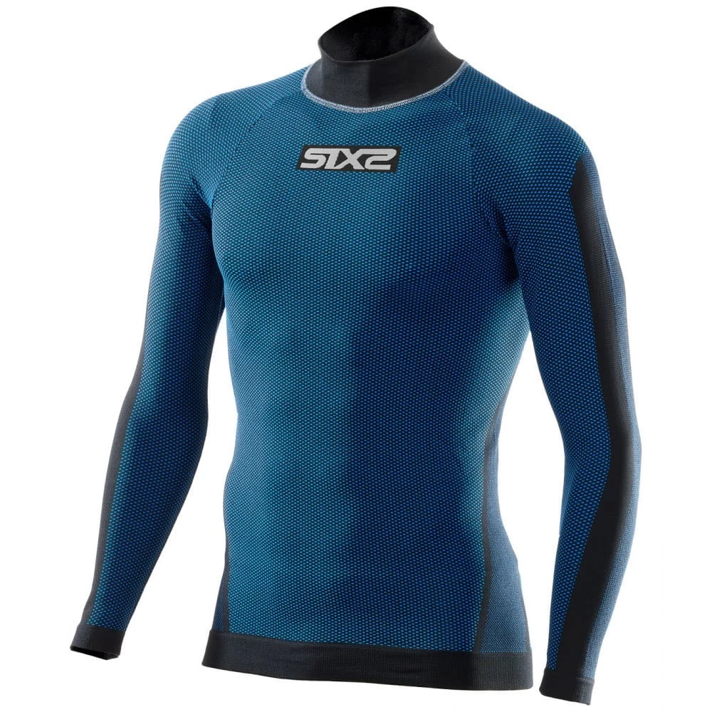 Het SIXS Carbon Underwear shirt met lange mouwen en opstaande kraag is ademend en thermoregulerend in alle weersomstandigheden. De lange mouwen omsluiten de armen volledig, houden de huid fris en liggen tussen de huid en de overkleding. Tegelijkertijd beschermen ze gemakkelijk tegen koude tocht wanneer een versie met korte mouwen over het shirt wordt gedragen. De opstaande kraag beschermt ook de nek tegen plotselinge temperatuurschommelingen en tocht.